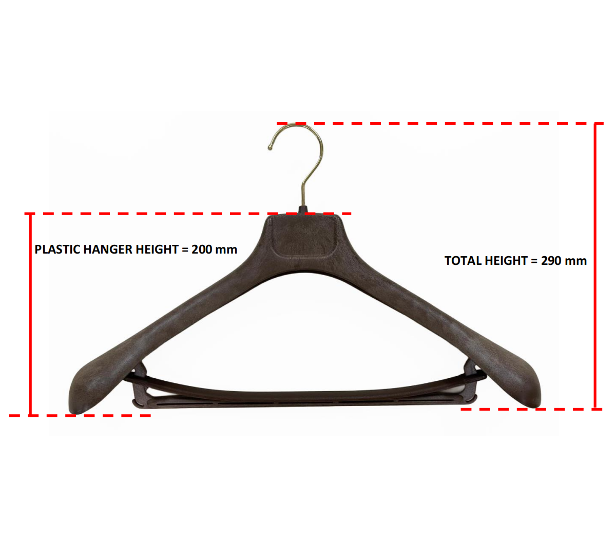 | SH4529 | Plastic Coat Hanger | 445mm(17.5'') | 70mm(2.75'') | 290mm(11.4'') | 71*46*48 | 100pcs |