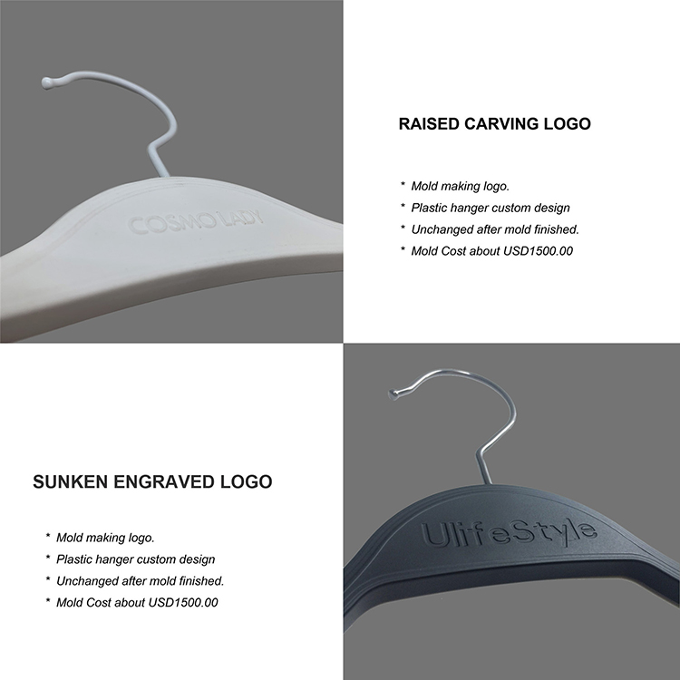 Most of the clients hope can add their LOGO on the hangers. We call it branded the hangers.